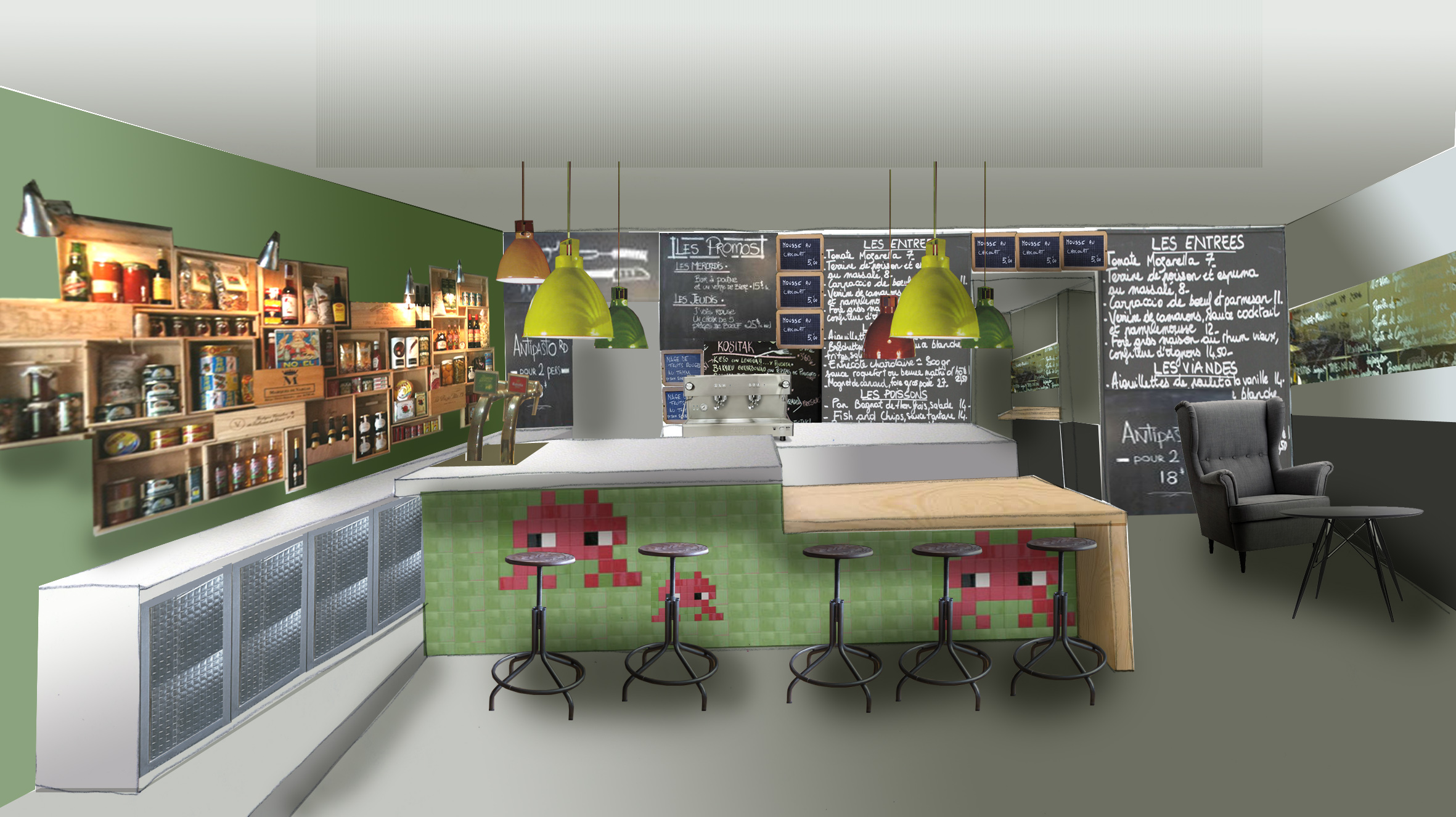 Hace dos semanas nos vino a ver Alexis, que quiere ofrecer a su bar una nueva decoracion! Actualmente, es un bar de barrio, classico, que sirve tapas y vinos selectos.