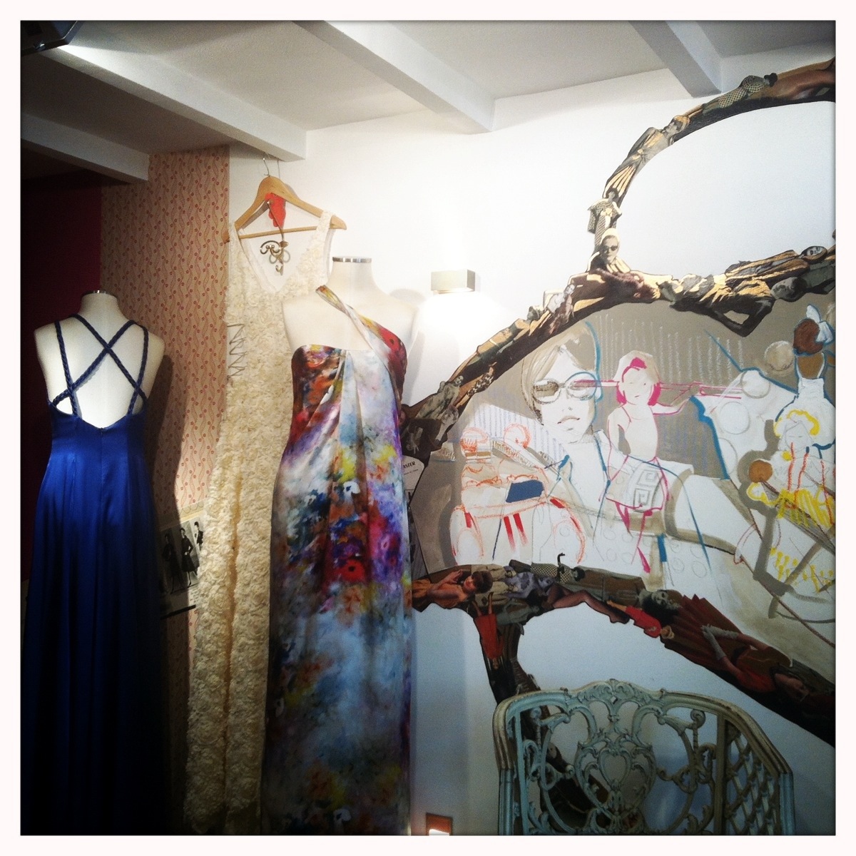 Hacia mucho tiempo que no habiamos ido, desde su inauguracion, y nos hemos encontrado con una «tienda- boudoire» muy bonita y repleta de vestidos de color.