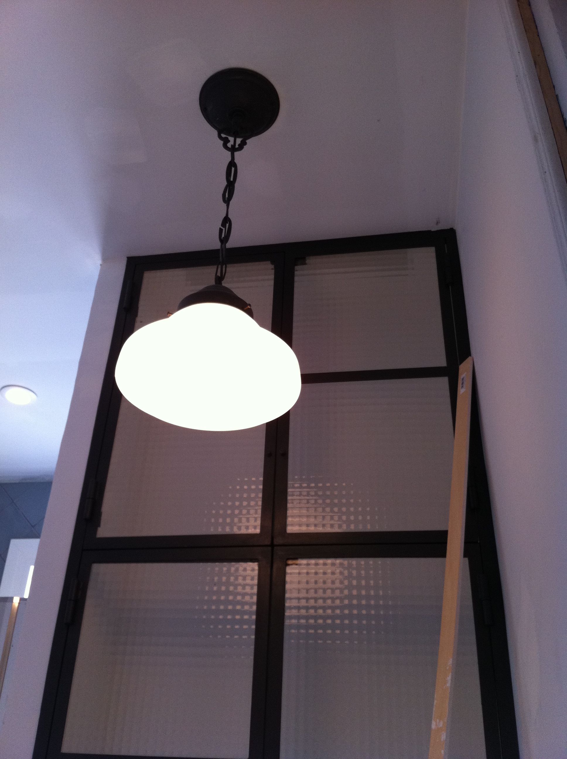 la lampara la compro la clienta en un mercadillo…Seguro que si vas a Los Encantes un dia, encuentras unas lamparas de este estilo.