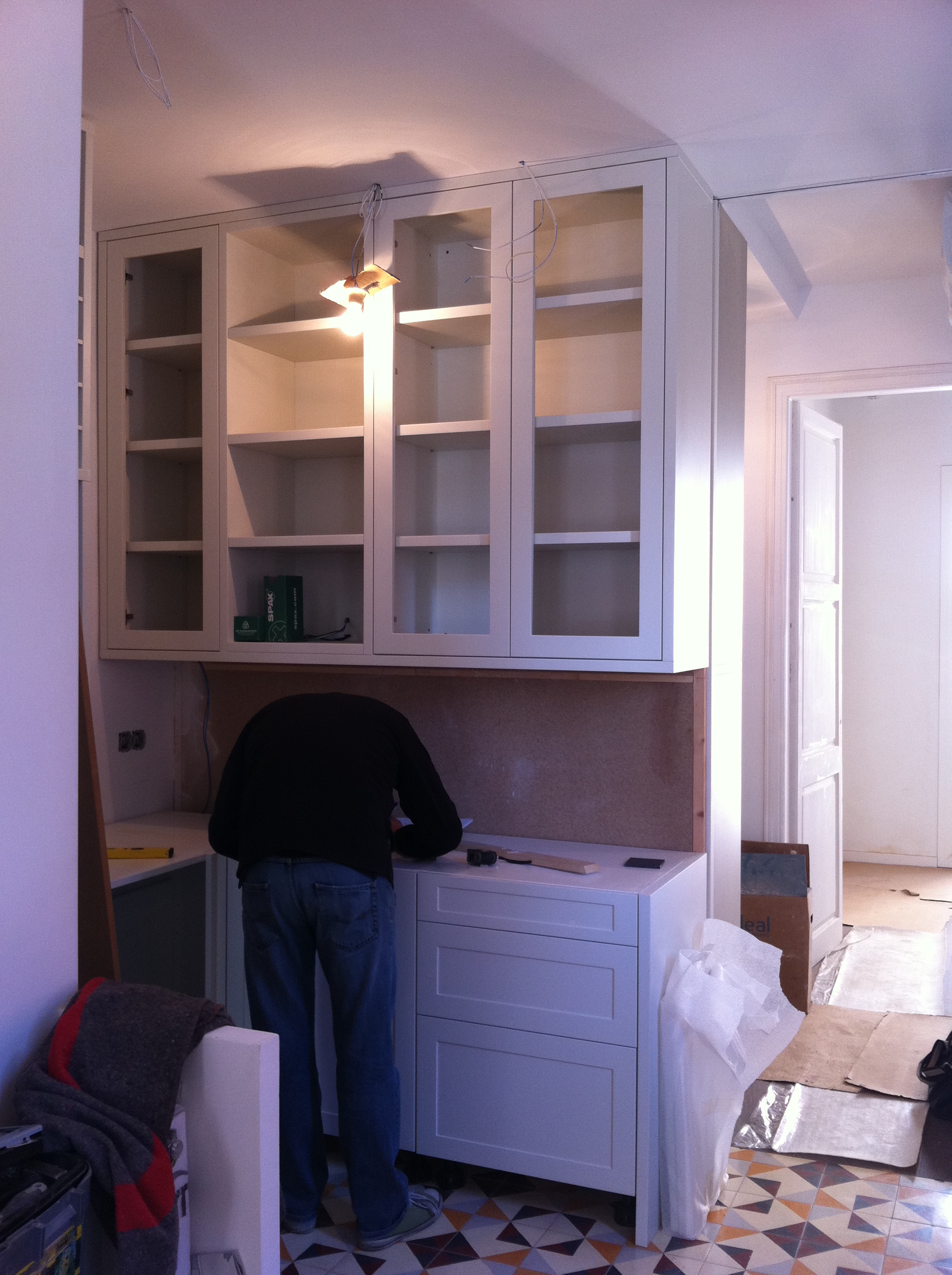 Los carpinteros siguen trabajando, instalando vitrinas, armarios vestidores, puertas correderas…