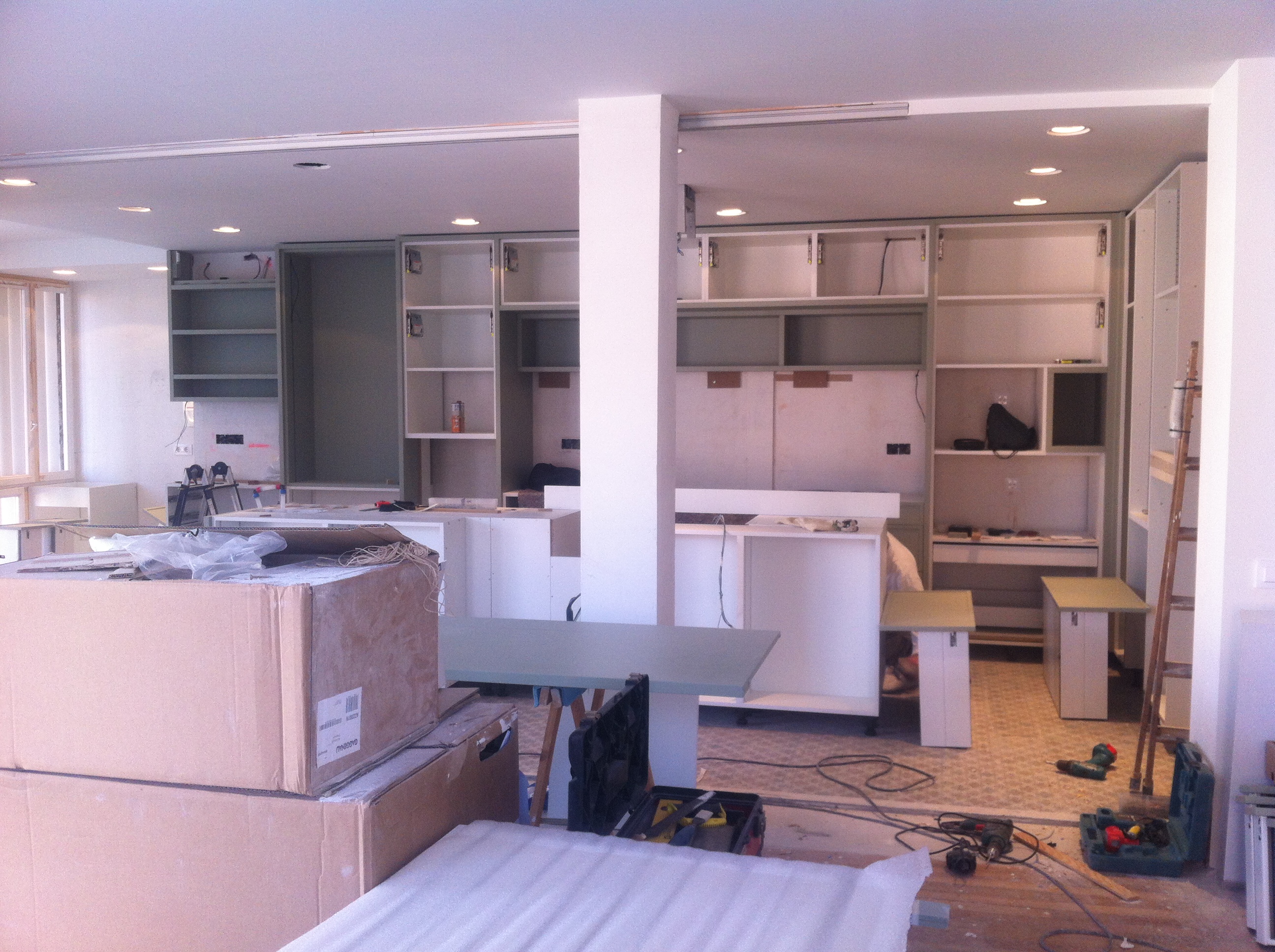 Esta semana han llegado los muebles de cocina de Deulonder, y los montadores estan en plena acción….