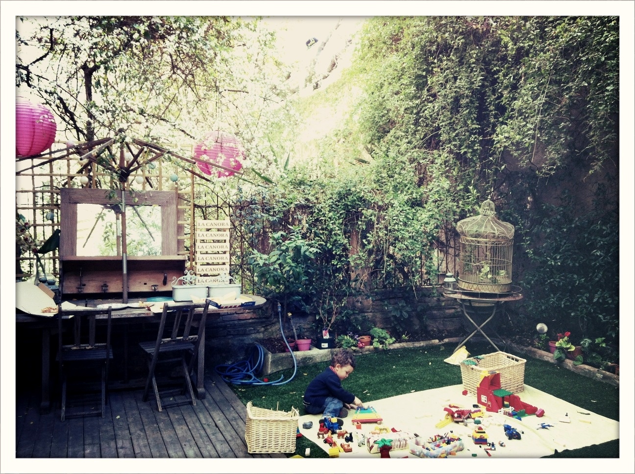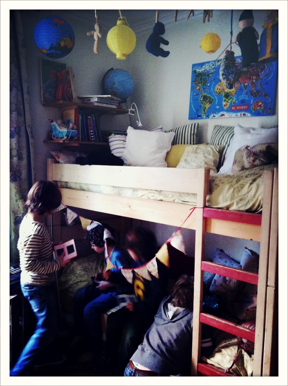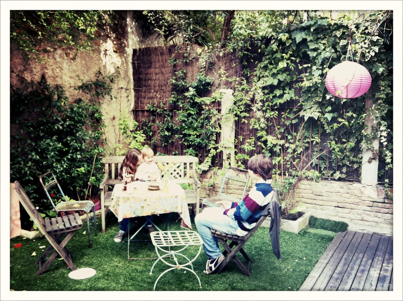 Cuando vamos, aparte de sus 4 hijos (que tambien van y vienen, o durmen, o juegan en el jardin), siempre estan por aqui las amigas de Camila (15), las primas de Sofia (7), unos amigos del cole de Nicolas (9) o una visita extra de Ines (11).