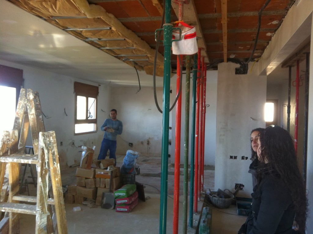 Ahora todo esta cogiendo velocidad y buen ritmo : se estan acabando los baños, los techos estan a punto, la chimenea se revistio, y empezan mañana a colocar el parquet!